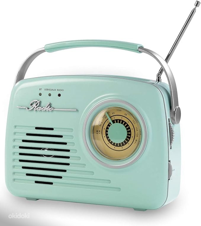 This product is a "DESIGN-RADIO 50s Retro Style" radio. It boasts a Bluetooth function that allows wireless music enjoyment from smartphones, tablets, or laptops, even on the go. The radio operates on 4 x Baby C 1.5V batteries, which are not included in the package. It features AM/FM bands with a telescopic antenna and a control dial for frequency and volume adjustments. The design reflects the charm and style of the 1950s. The EASYmaxx radio includes a USB port with a USB cable, an AUX port, an SD card slot, and a headphone output. It measures 21 cm x 6.5 cm x 19.5 cm, weighs 0.5 kg, and operates on 220-240V. Additionally, it is available in two colors